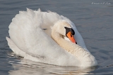 Der Höckerschwan (Cygnus olor) ist eine Vogelart, die innerhalb der Entenvögel (Anatidae) zur Gattung der Schwäne (Cygnus) und zur Unterfamilie der Gänse (Anserinae) gehört. Als halbdomestizierter Vogel ist er heute in weiten Bereichen Mitteleuropas beheimatet. Er hält sich bevorzugt auf Seen, Park- und Fischteichen, in seichten Meeresbuchten und im Winter auch auf offenen Flussläufen auf. Schwäne haben in Mitteleuropa nur wenige Fressfeinde und werden kaum bejagt, obwohl sie zu den jagdbaren Tierarten gehören. Zu einer Bestandsregulierung kommt es durch die stark ausgeprägte Territorialität der Schwäne während der Brutzeit sowie durch Verluste in strengen Winterhalbjahren. Quelle: Wikipedia