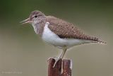 Ein ausgewachsener Flussuferläufer wird bis zu 22cm groß und erreicht eine Flügelspannweite bis zu 40cm. Er wiegt 40-80gr. Damit ist der Flussuferläufer kleiner als der Waldwasserläufer und unterscheidet sich von dieser Art auch durch die charakteristische weiße Keilzeichnung unter den weißen Brustseiten. Der Bauch ist weiß und die Oberseite ist in Prachtkleid braun mit einer feinen dunkelbraunen Kritzel und Pfeilspitzenzeichnung sowie einer unregelmäßigen Bänderung gemustert. Im Ruhekleid ist die Körperoberseite einheitlicher olivbraun. Die Augen sind schwarz und die relativ kurzen Beine blassgelb gefärbt. Er hat einen mittellangenSchnabel, der in allen Kleidern dunkelbraun mit einer hell orangebraunen Wurzel ist sowie einen dunklen Augenstreif. Quelle: Wikipedia