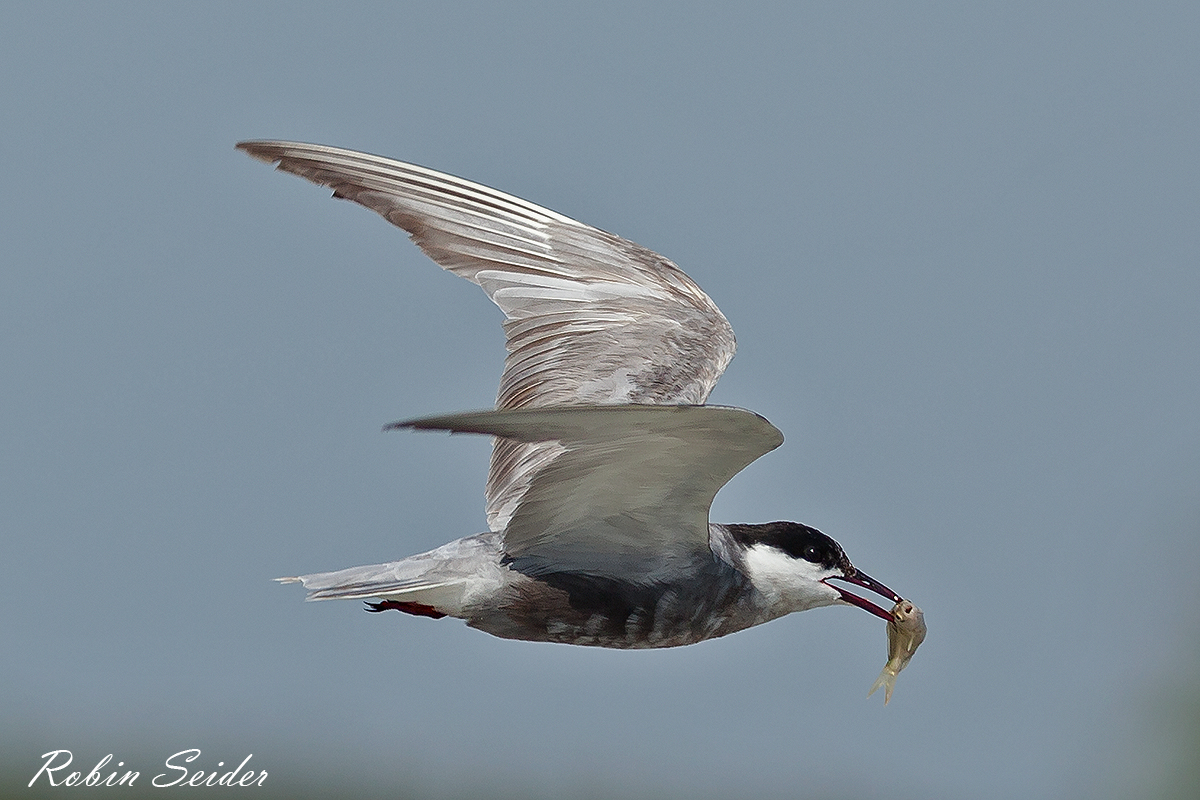 Die Weißbart-Seeschwalbe wird zwischen 24 und 28 cm lang und hat eine Spannweite von bis zu 63 cm. Im Vergleich zu anderen Sumpfseeschwalben ist sie größer, hochbeiniger und hat eine steifere Flugweise. Wenn die Weißbart-Seeschwalbe ihr Prachtkleid aufsetzt wird ihr Bauch und ihre Brust dunkelgrau und der Schnabel und die Beine rot. Wenn sie im Herbst oder Winter ihr Schlichtkleid aufsetzt ist der Hinterscheitel dünn schwarz gestrichelt und sie bekommt einen schwarzen Fleck hinter dem Auge. Der Bürzel und der Schwanz werden hellgrau wenn sie ihr Jugendkleid anlegt und der Rücken ist dann kräftig gelbbraun gemustert. Das erste Winterkleid sieht dem Schlichtkleid ähnlich, jedoch hat sie nun Flügel mit dunklen Armschwingen und den Schwanz noch aus dem Jugendkleid. Quelle: Wikipedia