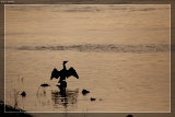Die Kormorane (Phalacrocorax) sind eine Gattung aus der Ordnung der Ruderfüßer (Pelecaniformes). Tragen die Vögel einen Federschopf, werden sie als „Scharben“, sonst als „Kormorane“ bezeichnet, doch entspricht diese Einteilung nicht den tatsächlichen Verwandtschaftsverhältnissen. Im Volksmund heißen diese Vögel auch „Seeraben“, „Meerraben“ oder „Wasserraben“. Kormorane sind knapp gänsegroß, sie haben eine Körperlänge von 77 bis 94 cm und eine Flügelspannweite von 121 bis 149 cm. Männchen sind etwas größer und schwerer als Weibchen. Die Gewichte von Männchen schwanken zwischen 1975 und 3180 g, Weibchen erreichen 1673–2555 g. Quelle: Wikipedia