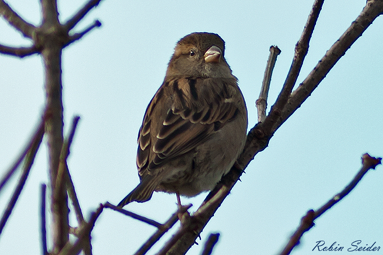 Der Haussperling (Passer domesticus) – auch Spatz genannt – ist eine Vogelart aus der Familie der Sperlinge (Passeridae) und einer der bekanntesten und am weitesten verbreiteten Singvögel. Der Haussperling ist ein kräftiger und etwas gedrungener Singvogel. Er wiegt ungefähr 30 Gramm und die Körperlänge liegt bei etwa 14 bis 16 Zentimeter – er ist damit ein wenig größer als der nah verwandte Feldsperling. Nach deutlichen Bestandsrückgängen in der zweiten Hälfte des 20. Jahrhunderts vor allem im Westen Mitteleuropas wurde die Art in die Vorwarnliste bedrohter Arten aufgenommen. Quelle: Wikipedia