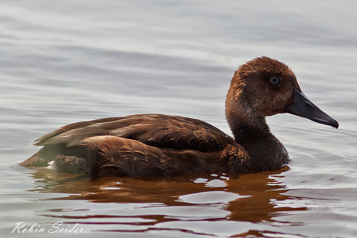 Die Moorente ist die kleinste Tauchente der Gattung Aythya. Sie erreichen eine Körperlänge von 38 bis 42cm. Moorenten wiegen ø 560g. Das Brutkleid des Moorentenerpels ist leuchtend kastanienbraun mit weißen Augen. Das Weibchen ist ähnlich, jedoch blasser gefärbt und hat braune Augen. Bei den Weibchen ist vor allem der Kontrast zwischen der Färbung des Rückens und des übrigen Körpers weniger auffallend. Beide Geschlechter haben weiß leuchtende Unterschwanzdecken, die sich auffallend vom Schwarzbraun des Hinterrückens abheben. Der lange Schnabel ist dunkelgrau bis blauschwarz gefärbt; die Spitze ist aufgehellt. Quelle: Wikipedia