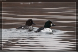 SchellenteDie 45-50cm große Schellente wiegt 500-1.300g u. erreicht eine Flügelspannweite bis zu 80cm. Das Männchen hat ein schwarz-weißes Gefieder und einen dunkelgrünen Kopf. Zwischen dem Auge und dem schwarzen Schnabel gibt es einen weißen Fleck. Auffällig sind die leuchtend gelben Augen der Männchen, die auch der Grund für den englischen Namen „Goldeneye“ sind. Adulte Männchen können von Weibchen jedoch durch das auffällige Flügelmuster unterschieden werden. Das Weibchen hat ein graues Gefieder und einen dunkelbraunen Kopf ohne weißen Fleck. Die Beine sind rötlich gefärbt. Bei den Weibchen sind die Iris perlweiß. Quelle: Wikipedia 7 Bilder |
