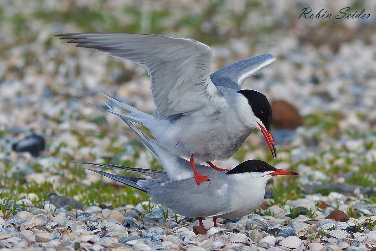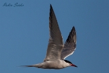 Die Fluss-Seeschwalbe sieht der Küstenseeschwalbe sehr ähnlich, ist aber etwas kleiner. Sie erreicht eine Körpergröße zwischen 27 und 31cm. Die Flügellänge beträgt 23,9 und 28,7 cm. Die Flügelspannweite beträgt 72 bis 82 cm. Männchen sind tendenziell etwas größer als die Weibchen. Die schlanke Fluss-Seeschwalbe hat einen gegabelten Schwanz und einen roten Schnabel mit einer schwarzen Spitze. Ihr Gefieder ist weiß bis hellgrau und ihr Oberkopf tiefschwarz gefärbt. Im Schlichtkleid ist die Stirn hell und der Schnabel schwarz. Die Beine sind rot gefärbt. Jungvögel ähneln den nichtbrütenden adulten Vögeln, haben aber schuppenartige Flecken auf der Körperoberseite. Die Oberkopf ist eher bräunlich als schwärzlich gefärbt. Die dunkle Kopfkappe ist weniger deutlich und klar abgegrenzt als dies bei adulten Vögeln der Fall ist. Quelle: Wikipedia