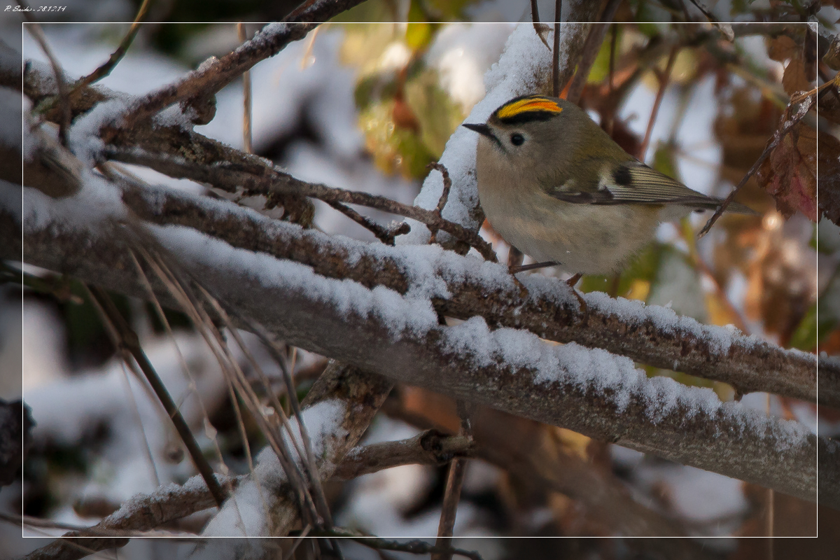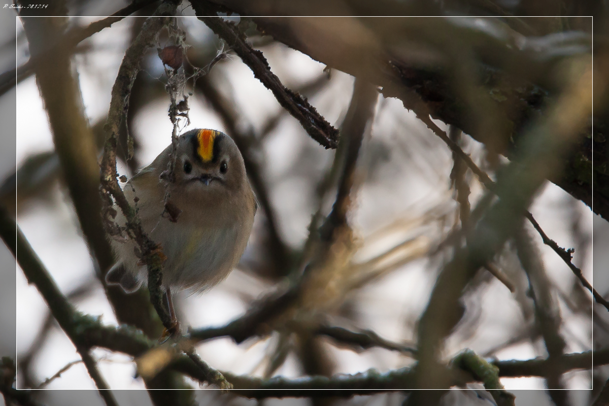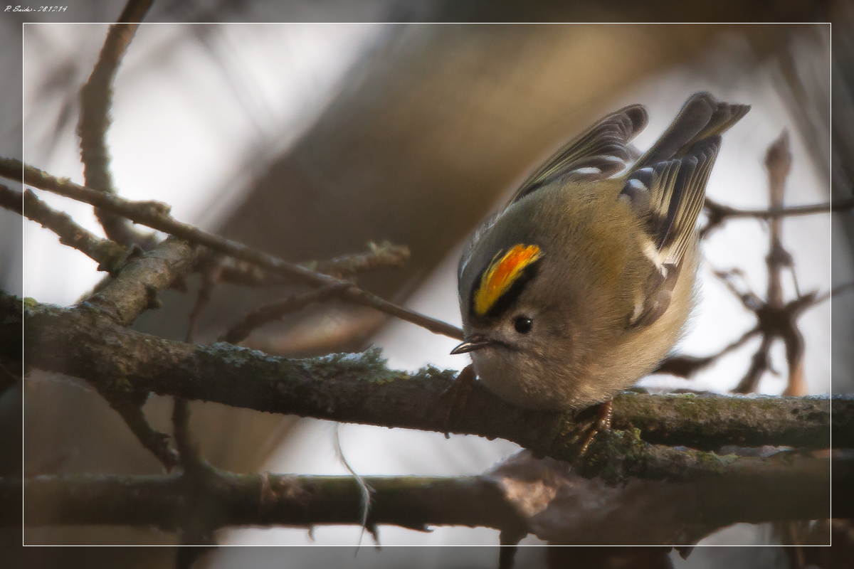 Das Wintergoldhähnchen (Regulus regulus) ist der kleinste Vogel Europas. Mit seinen etwa neun cm Körpergröße wiegt es nur zwischen 4 und 7g. Es ist leicht mit dem Sommergoldhähnchen zu verwechseln, das aber anders als das Wintergoldhähnchen einen schwarzen Augenstreifen besitzt. Die Reviere dieser beiden Vogelarten, die eine Vielzahl ähnlicher Verhaltensweisen haben, überlappen sich gelegentlich. Das Wintergoldhähnchen steht jedoch in keiner direkten Nahrungskonkurrenz mit dem Sommergoldhähnchen, da es sich mit seinem Nahrungsspektrum auf kleinste Beutetiere spezialisiert hat und anders als das Sommergoldhähnchen diese bevorzugt auf der Unterseite von Ästen sucht. Quelle: Wikipedia