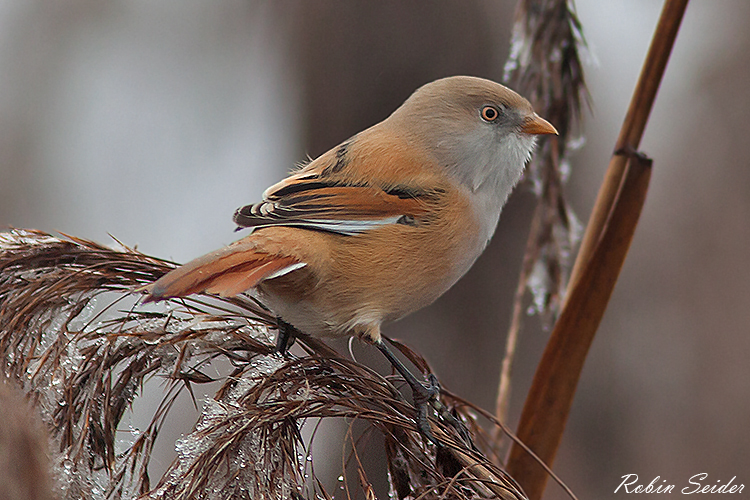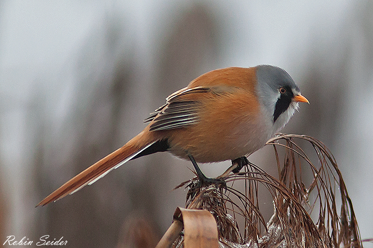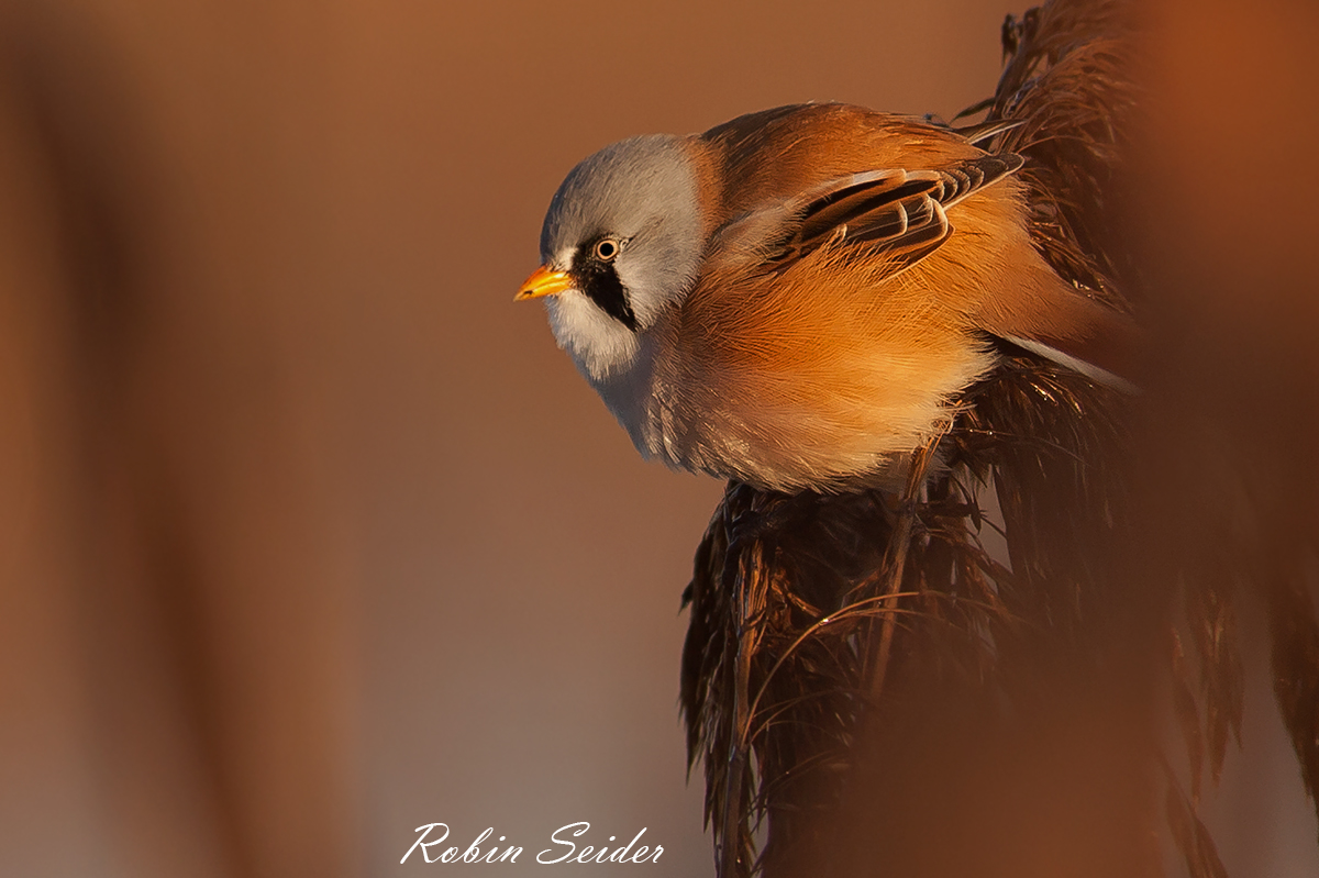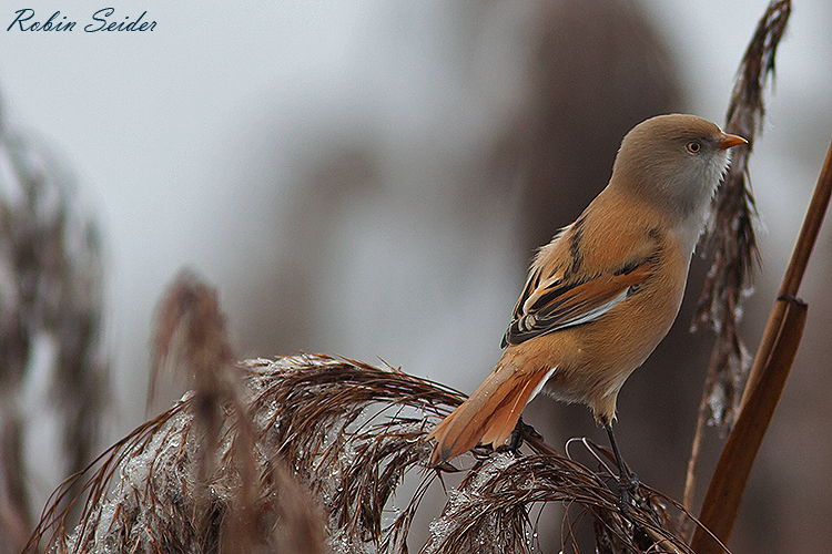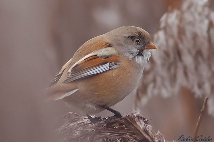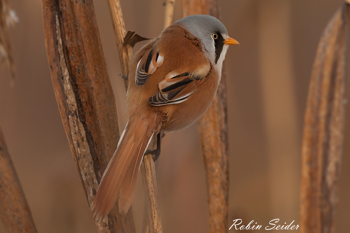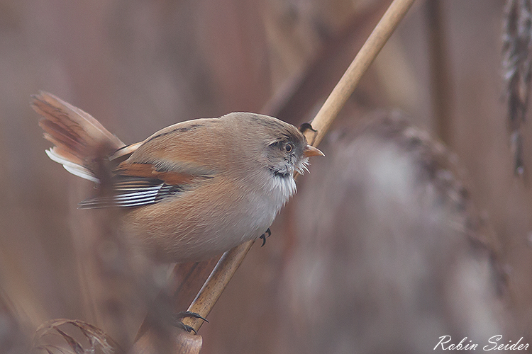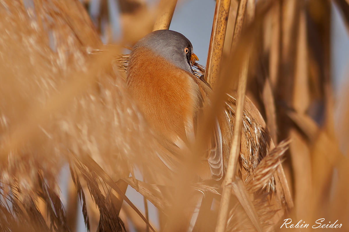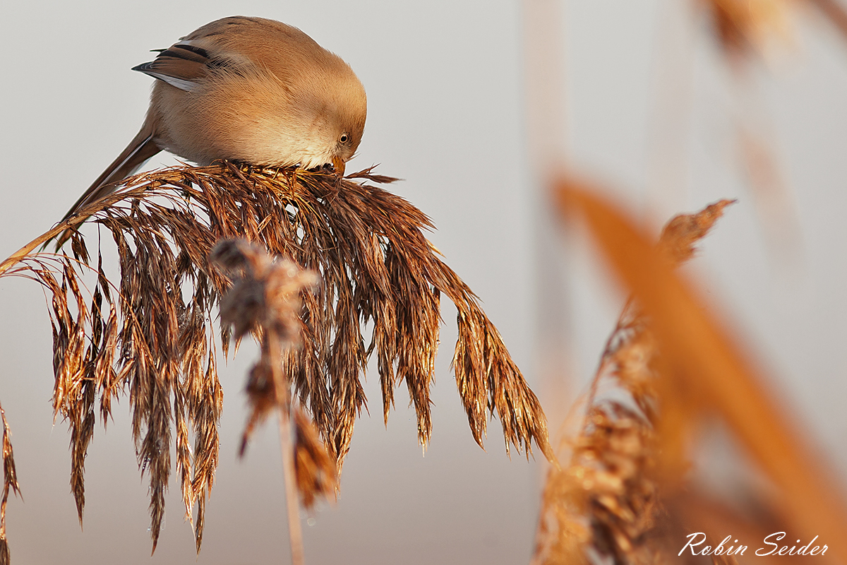 Die Bartmeise (Panurus biarmicus) ist eine Vogelart und wird heute meist als einzige Art der damit monotypischen Panuridae betrachtet. Sie ist ein meisenartiger, langschwänziger Bewohner großer Schilfflächen. Ihre Länge beträgt zwischen 14 und 15,5 cm. Sie ist klein, hell gelbbraun und hat einen hell gelbbraunen Schwanz. Das adulte Männchen besitzt einen hell blaugrauen Kopf mit langem schwarzen Bartstreif und weißer Kehle. Die Unterschwanzdecken sind weiß. Bei dem adulten Weibchen dagegen ist der Kopf beigebraun ohne schwarzen Bart. Die Kehle ist schmutzigweiß und die Unterschwanzdecken sind beige. Jungvögel ähneln adulten Weibchen, haben jedoch eine schwarze Mantelmitte und schwarze Bereiche im Schwanz. Ihr Gefieder ist eher gelbbeige. Quelle: Wikipedia
