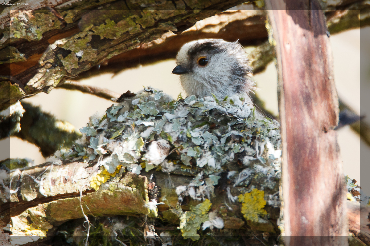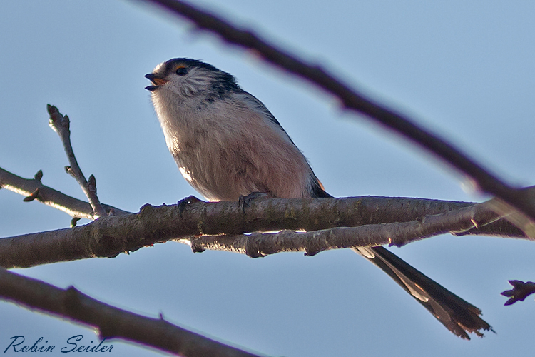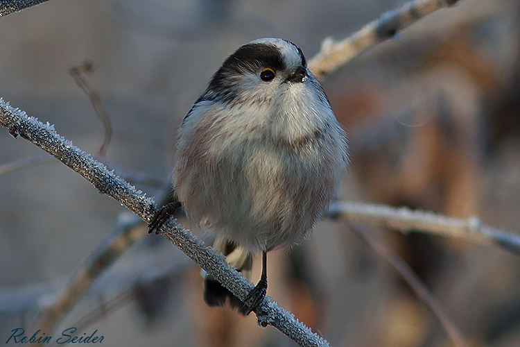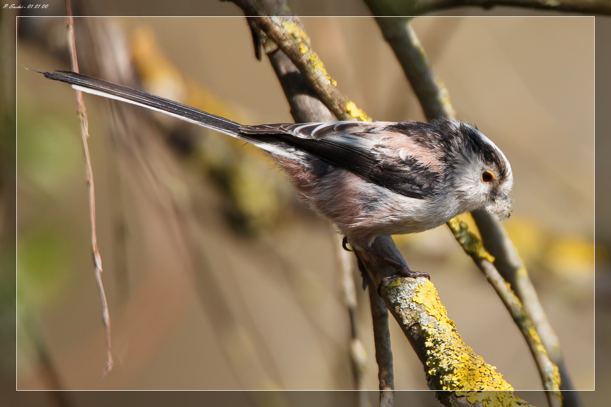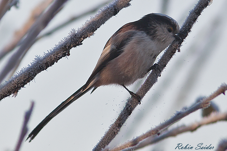 Die Schwanzmeise (Aegithalos caudatus Europäus) ist ein kleiner Sperlingsvogel aus der Familie der Schwanzmeisen (Aegithalidae). Die Kopfzeichnung ändert sich mit der Unterart und der geographischen Verbreitung. Sie hat einen dunklen Kopf und findet sich vor allem im West- und Südeuropa. Die Aegithalos caudatus caudatus in Nord- u. Osteuropa ist weißköpfig. In Mitteleuropa können beide Formen nebeneinander vorkommen. Die Schwanzmeise ist mit 13–16 cm Gesamtlänge recht klein, hat einen rundlich-kugeligen Körper und einen mit 6–10 cm auffallend langen Schwanz, worauf der Artname zurückgeht. Der schwarze Schnabel ist mit 6–7 mm Länge kurz und fein. Das Gewicht beträgt sieben bis zehn Gramm, die Flügellänge 6–7 cm. Quelle: Wikipedia